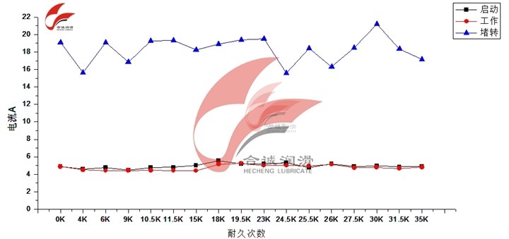 3、電流值取樣規(guī)則如下:每上升下降1000——2000次為一個(gè)循環(huán),進(jìn)行取樣,每次 測(cè)量10組開閉循環(huán)的電流值,包括上升下降的啟動(dòng)電流、堵轉(zhuǎn)電流。如此反復(fù)一直持續(xù)到出現(xiàn)故障停止工作或達(dá)到預(yù)期的耐久壽命為止。