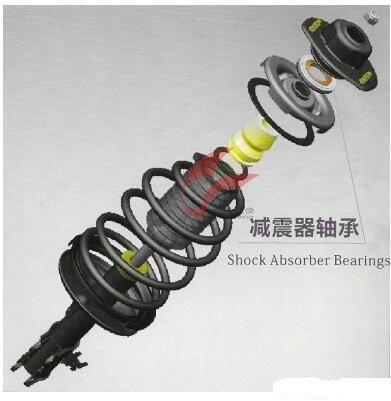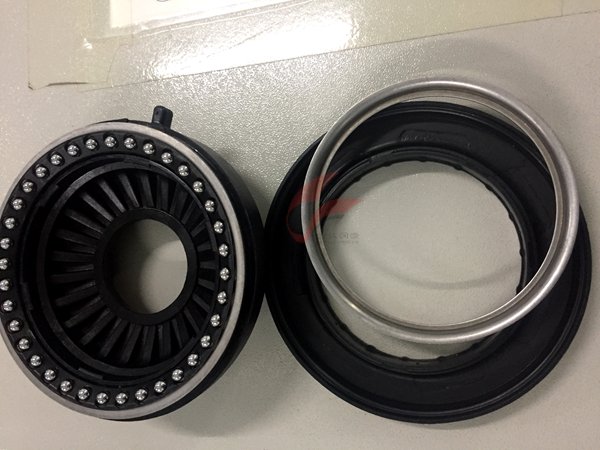 平面軸承安裝于減震器的頂端,位于彈簧和減震器頂膠之間,它要承受上下的壓力還能自由轉(zhuǎn)動(dòng)。