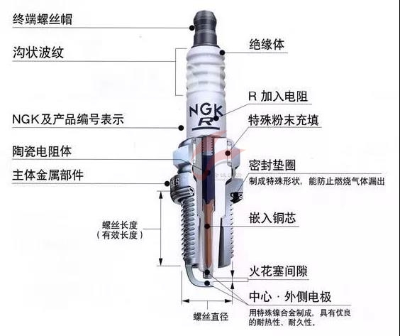 結(jié)構(gòu)并不復(fù)雜,用途單一。汽油機點火系統(tǒng)中將高壓電流引入氣缸產(chǎn)生電火花,以點燃可燃混合氣體?;鸹ㄈ山泳€螺母(終端螺絲帽)、絕緣體、陶瓷電阻體、主體金屬部件、中心電極、側(cè)電極等部件組成,側(cè)電極焊接在外殼上。